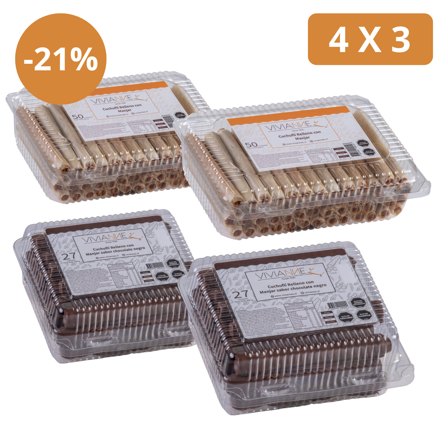 Pack 4x3 Cuchuflís Mix 🍫🧁 – 2 Tradicionales + 2 Chocolate Negro (¡Paga solo 3!)