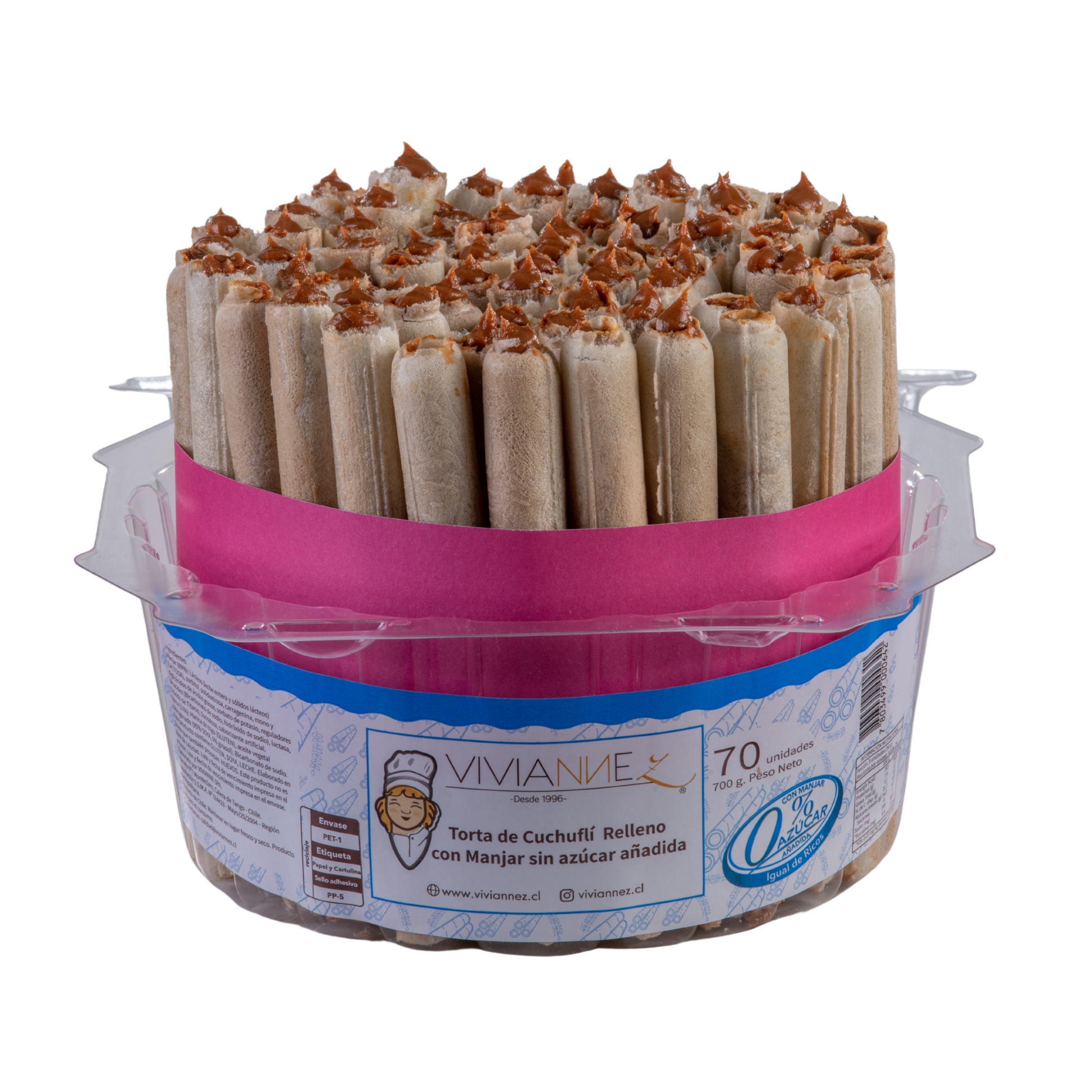 Disfruta el sabor que amas sin azúcar añadida. Este pack incluye 2 tortas de cuchuflí sin azúcar añadida (70 unidades cada una), perfectas para compartir o darte un gusto sin culpas.